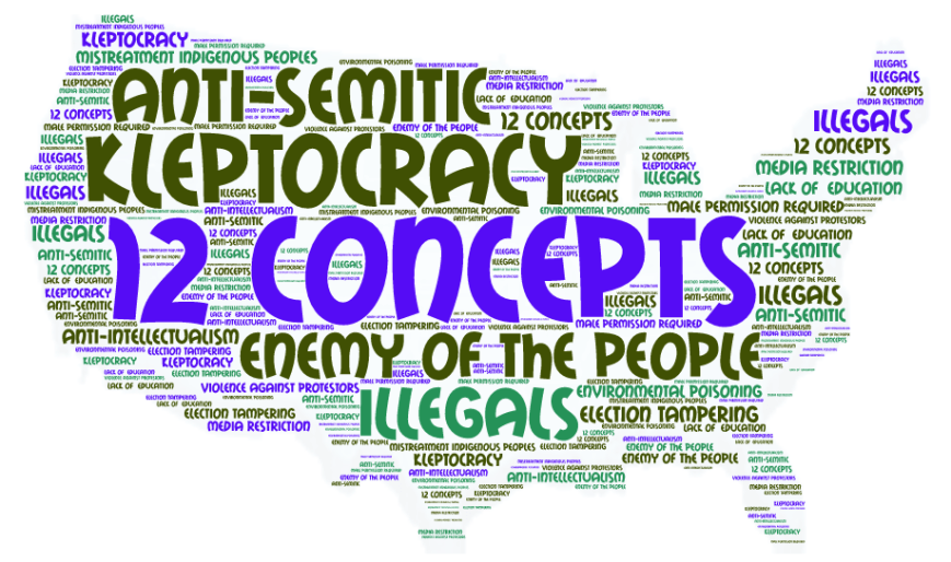 When I taught World Regional Geography, I lectured about concepts relating to politics, environmental issues, genocide, and human rights issues, particularly in Latin America, Africa, and South Asia. I never dreamed that some of these terms would apply or re-apply themselves to the United States of America (USA) in the early twenty-first century. But then we experienced a regime change. So, instead of feeling helpless, I made a list of a dozen terms that I believe unfortunately for almost everyone, may now apply to the USA. I’ve included their historical use in my classes as well as their current application in these “united states”, which seem, to me, are less united than ever.