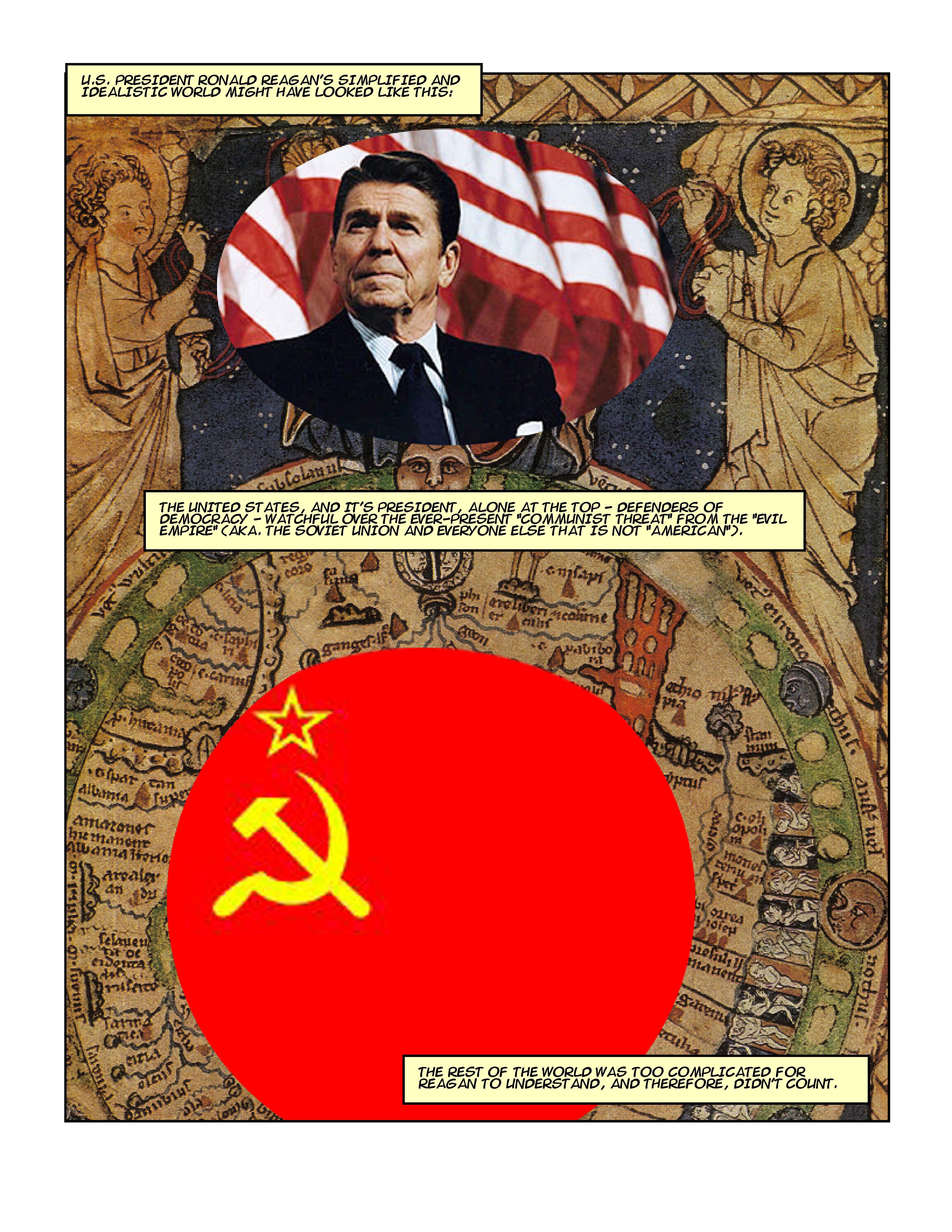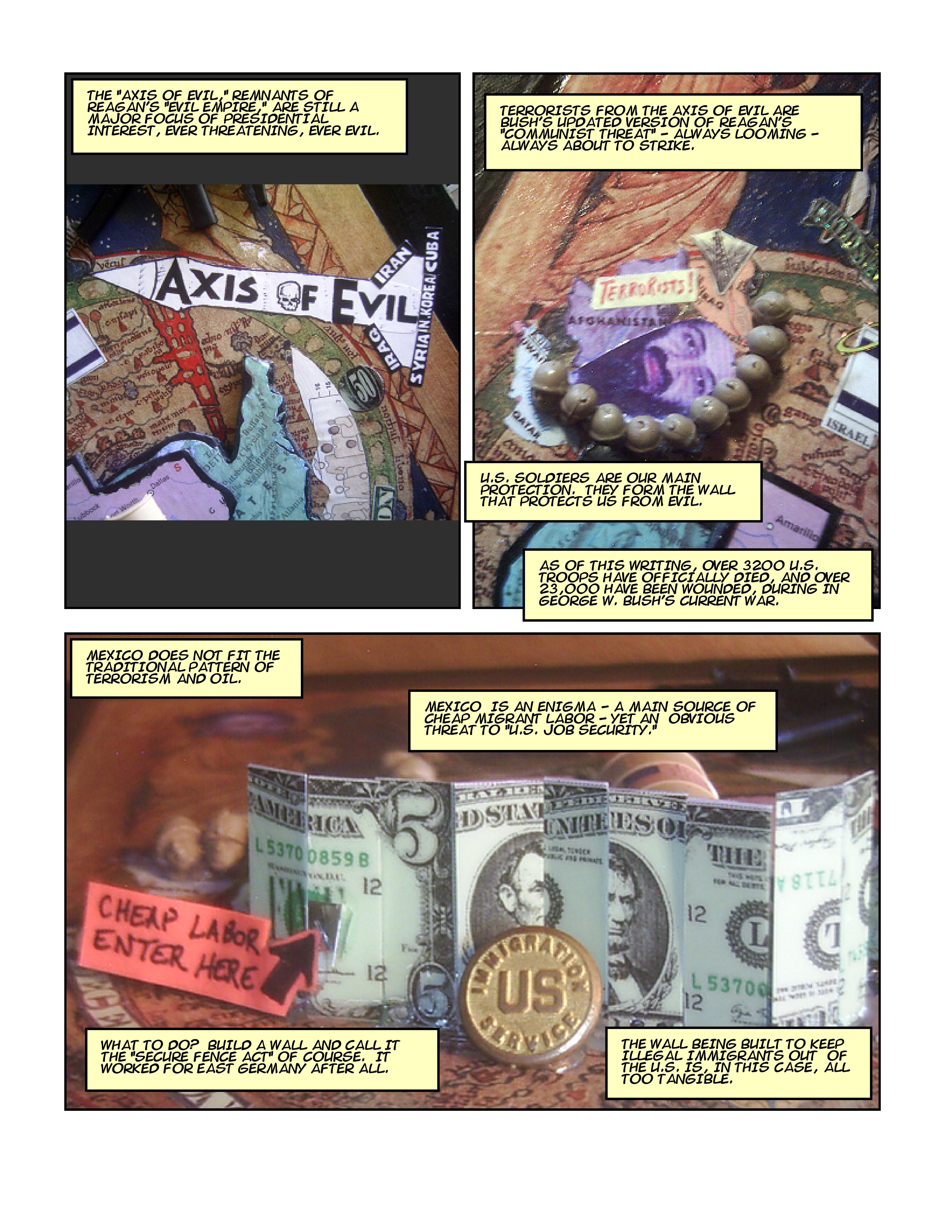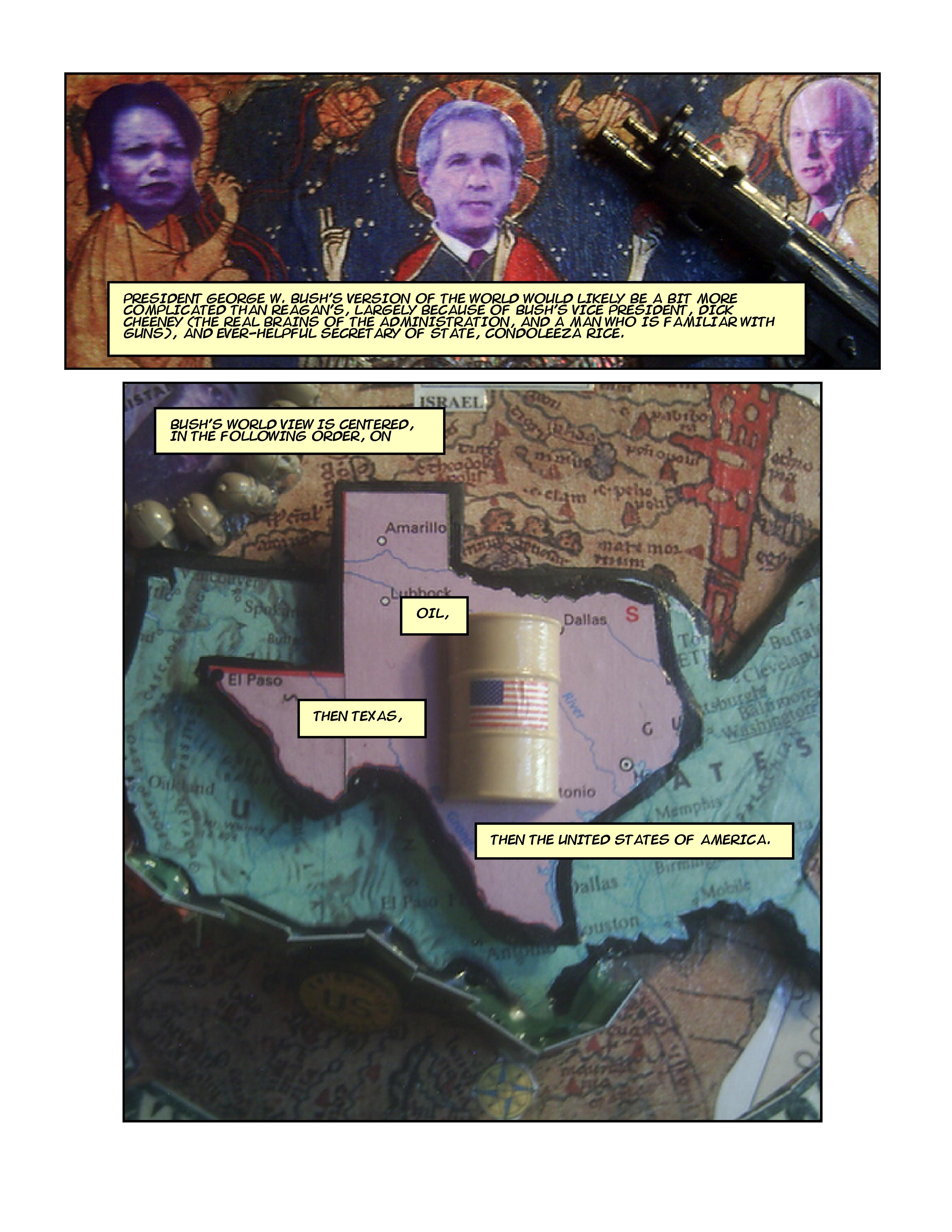 “Views of the World” is a comic I created in 2007. It stemmed from frustration with the Bush Administration and the Operation Iraqi Freedom. It was originally published in the Hutchins Literary Magazine Zephyr.
